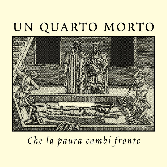 Ho ascoltato per la prima volta Che la paura cambi fronte degli Un Quarto Morto (o ¼ Morto) quando è uscito, dieci anni fa. Riascoltare questo 7’’ ora fa un effetto un po’ diverso. Ciò perché se da un lato la carica adrenalinica che l’eccezionale fastcore del quartetto marchigiano riesce a darmi cresce ancora ad ogni ascolto, dall’altro la congiuntura storica in cui mi trovo a scrivere mi fa pensare sempre più spesso a ciò che questo disco rappresenta: un attacco. Un attacco ad un esistente nel quale la paura si palesa dolorosamente come Stimmung caratterizzante l’ordine sociale, diffusa come il morbo grazie al quale è diventata ora più che mai strumento di sopruso nei confronti dei diseredati, degli oppressi e degli esclusi. Un attacco condotto tramite la fermezza nell’etica DIY (che caratterizza rigorosamente tutta la produzione degli ¼ Morto, in questo caso per mezzo dell’etichetta Hanged Man), tramite sonorità aggressive, feroci e ovviamente velocissime, e tramite le urla, invettive contro la condizione di paralisi e passività di chi è spettatore immobile della miseria, dell’angoscia e della perdita di senso dilaganti.